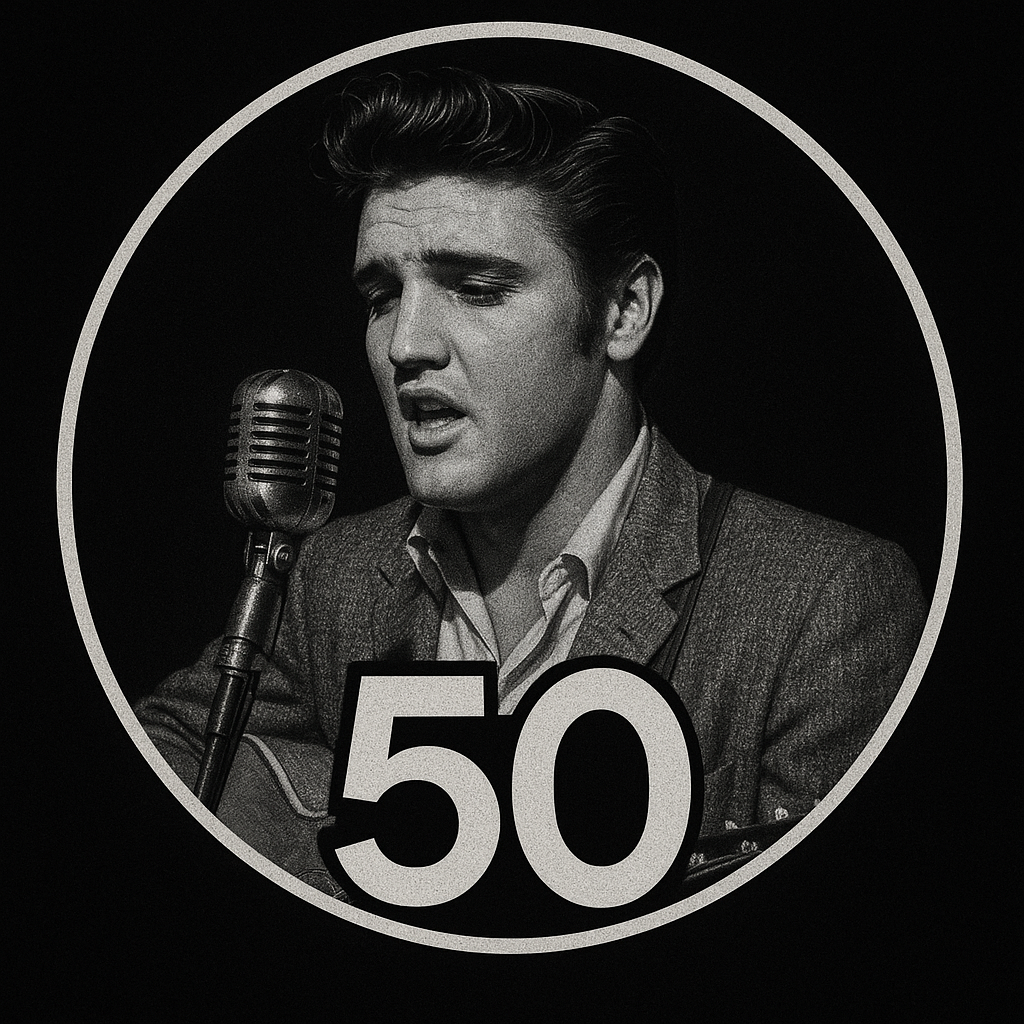 Elvis irrumpió en los 50 con una mezcla explosiva de country, blues y energía juvenil que cambiaría la música para siempre. Es la etapa del nacimiento del rock’n’roll y de himnos que aún hoy hacen vibrar al público.
